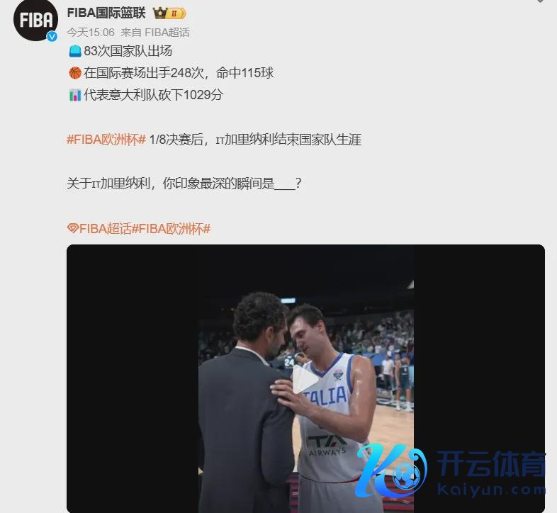 值得一提的是,16强意大利77-84不敌斯洛文尼亚的比赛,是他们的中枢前卫加里纳利国度队糊口终末一战。